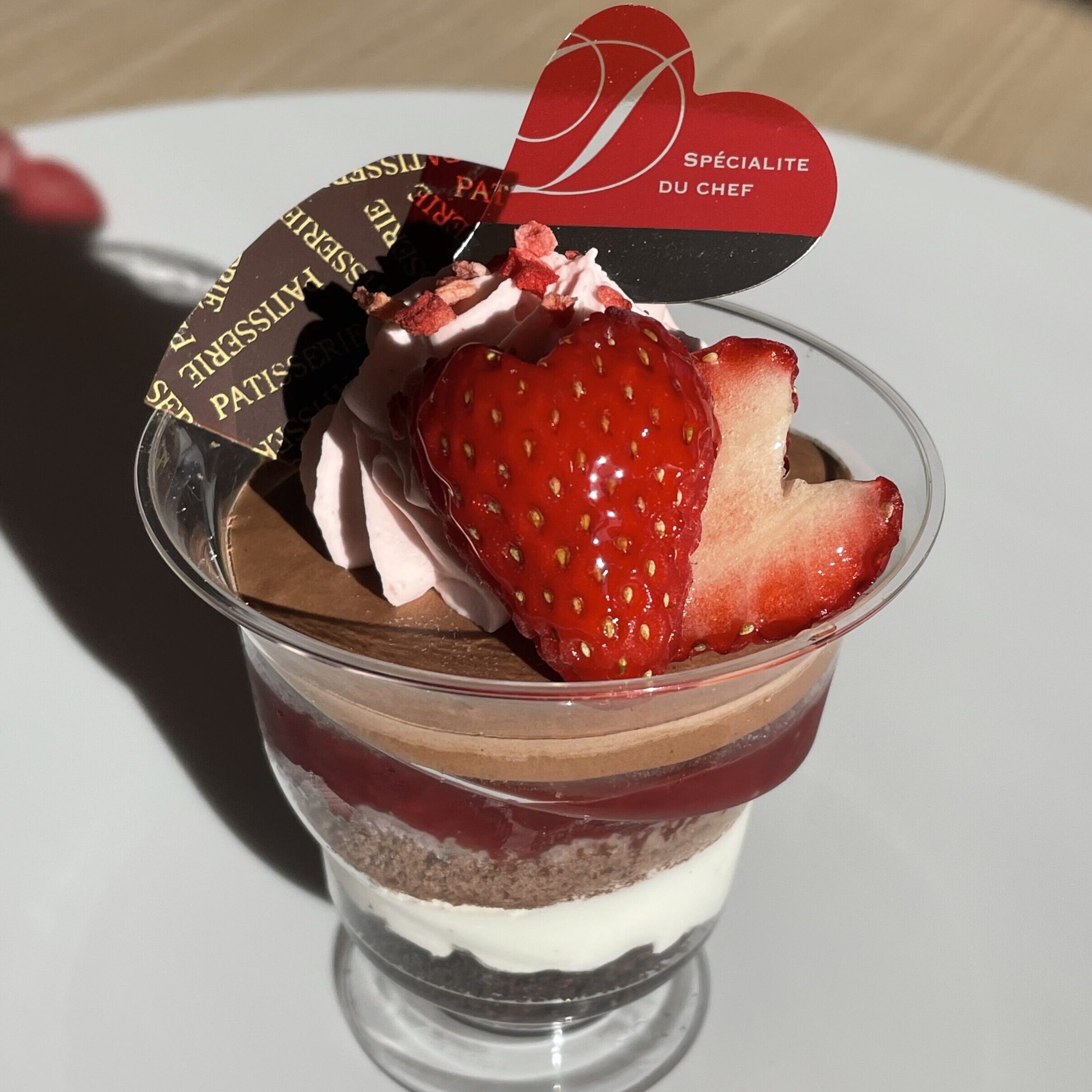甘酸っぱい自家製のいちごジャムと濃厚なチョコムースのパフェ。